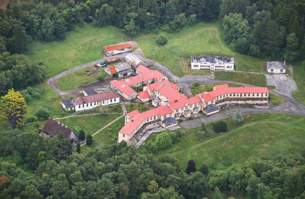 Of the buildings on site, the main one is a sprawling, two-storey hospital complex, dating to 1909. A curved, 55,000 sq ft (5,081 sq m) structure, it has various projections and numerous rooms opening at ground- and first-floor level to terraces and balconies, as befitted a sanatorium, where fresh air and rest were considered the route to recovery for consumptive patients. Ancillary buildings include a church and a house from the 1930s.