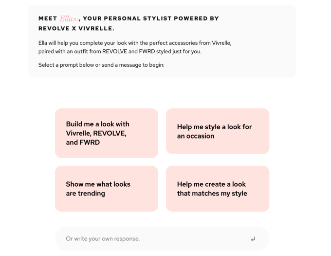 This is actually the second AI tool from the three companies. The Vivrelle, Revolve, and FWRD partnership earlier this year also launched Complete the Look, which offers last-minute fashion suggestions to complement what’s in a customer’s cart at checkout. Their latest tool, Ella, however, takes the fashion recommendation game to another level.