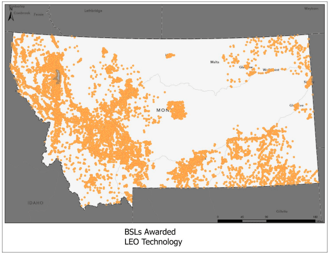 Broadband service locations (BSLs) proposed for grant funding for low-earth-orbit satellite connectivity by Montana’s broadband office via the federal BEAD program. Credit: Montana Broadband Office.