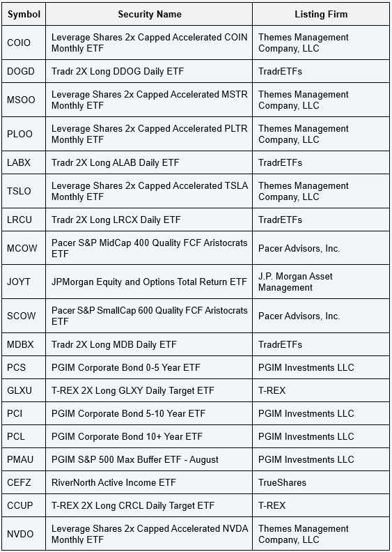 In August, 19 new Exchange Traded Funds (ETFs) were listed on Cboe BZX® Equities Exchange (BZX).