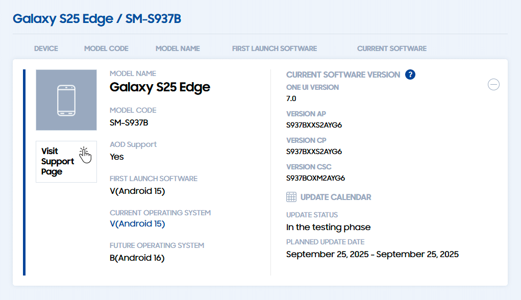 - Galaxy S25 Edge – September 25th