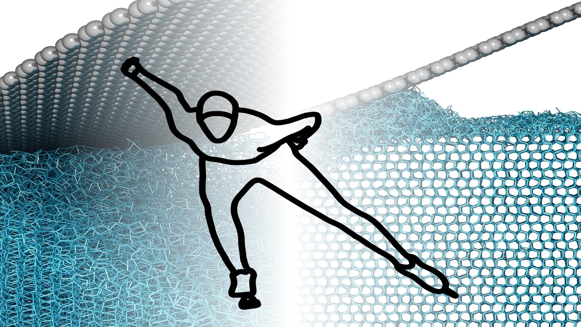 The illustration shows how contact with ice, whether through skis, skates, or shoes disrupts its orderly crystal structure. Credit: AG Müser