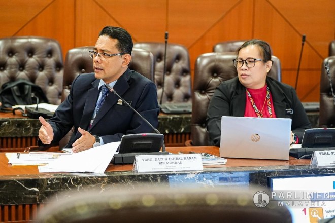 Public Service Commission (SPA) secretary Ikhbal Hanam Mukras (left) speaks at a Health parliament special select committee meeting on February 27, 2025. Photo by Parlimen Malaysia.