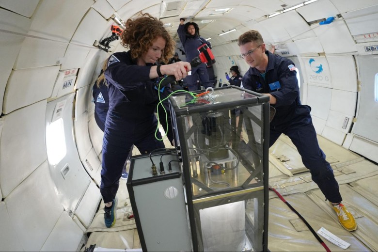 To test their hardware in low-gravity environments, Interlune has been booking flights with the Florida-based Zero-G Corporation, a private group that uses a modified B-727-200 aircraft to mimic lunar gravity conditions during parabolic dives.