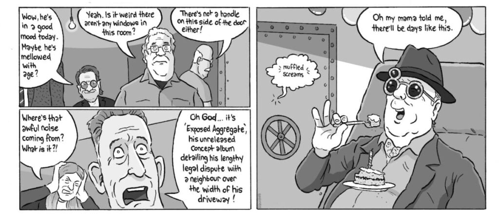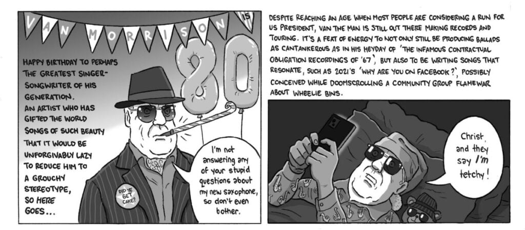 As the controversial Belfast boomer’s clock ticks over to 80 years, cartoonist David Squires is delving into his cantankerous character and classic capers.