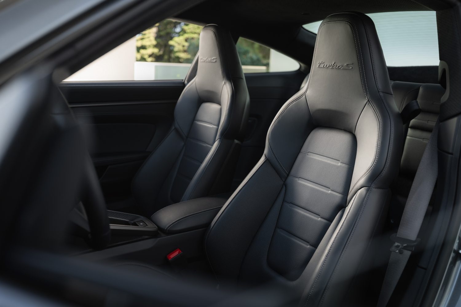More of that Turbonite colour of course, plus a restrained smattering of ‘Turbo S’ reminders dotted around the place – most obviously on the embossed headrests of the Adaptive 18-way Sports Seats Plus.