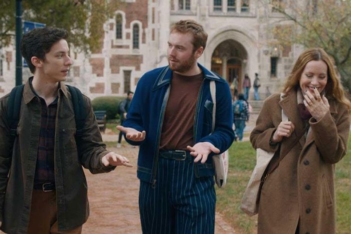 There’s an early scene in Poetic License, Maude Apatow’s directorial debut, which premiered at the Toronto International Film Festival over the weekend, in which an idiosyncratic college senior with family money, played by Cooper Hoffman, floats the idea of creating a LinkedIn account. His best friend, a comparatively buttoned-up economics student named Sam (Andrew Barth Feldman), asks Hoffman’s Ari what he would write on it. Ari chews on the question for a beat, a quizzical expression on his face as it morphs subtly from curiosity to bafflement to worry to contentment. Finally, he retracts his flight of fancy: “Never mind.” There aren’t many actors doing intense character work between the setup and punch line of a joke. In Poetic License, Hoffman establishes himself as one of them.