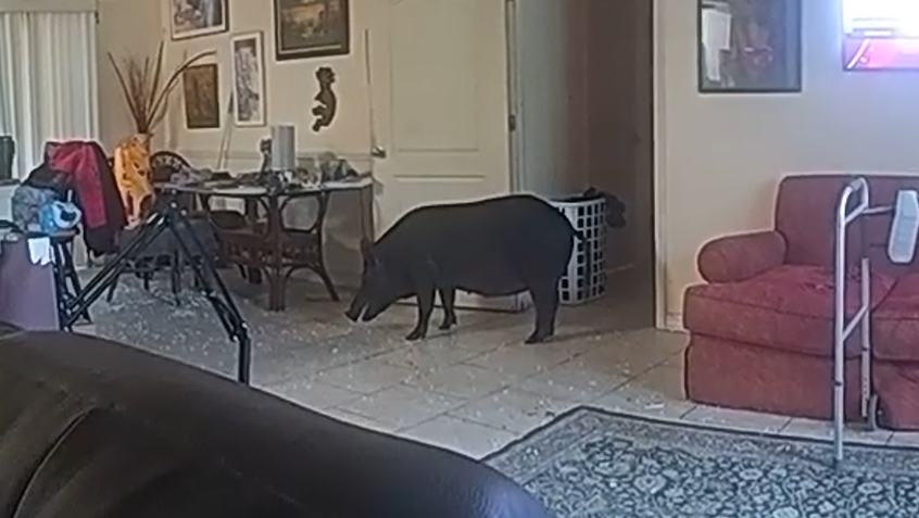 - A large wild hog broke into a Lehigh Acres, Florida, home through a sliding glass door.
