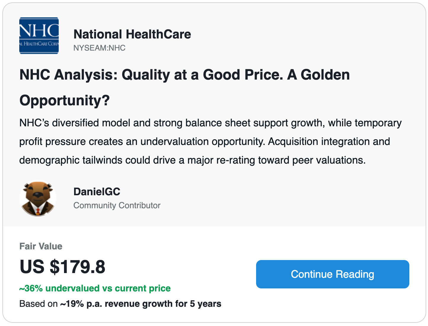 đĽ Why National HealthCareâs temporary profit pressure creates an opportunity.