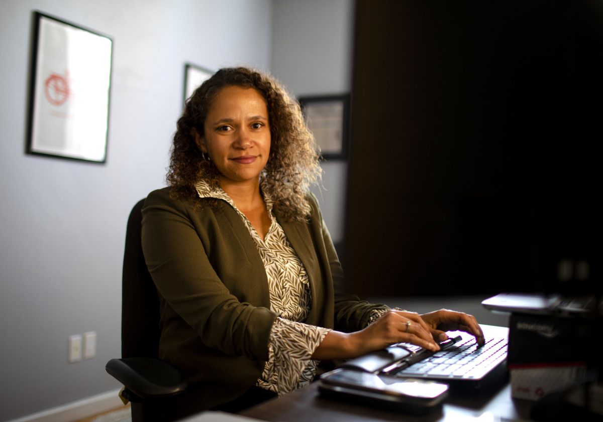 Executive Director of the Colorado Broadband Office, Brandy Reitter, works from her home office in Eagle, Nov. 1, 2022. (Hugh Carey, The Colorado Sun)
