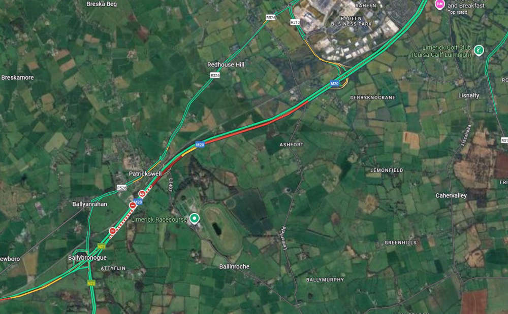 The road is currently being cleared of debris, and at the time of writing, delays continue in the Patrickswell.