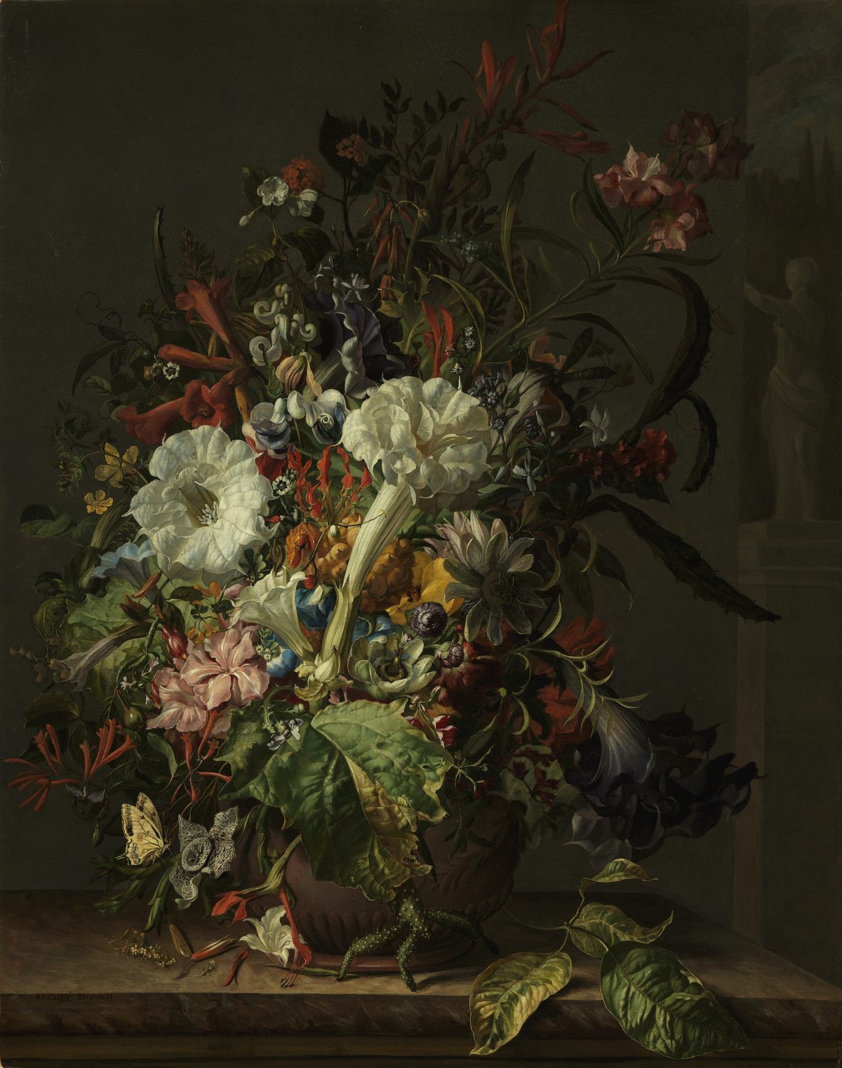 Rachel Ruysch: Artist, Naturalist, and Pioneer continues at the Museum of Fine Arts Boston (465 Huntington Ave, Boston, Massachusetts) through December 7. The exhibition was curated by Anna Knaap of the MFA Boston, with guidance for the scientific content from Charles Davis, Harvard University.