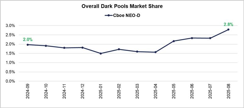 - NEO-D market share increased to approximately 0.2% overall market share and 2.8% of all dark pools