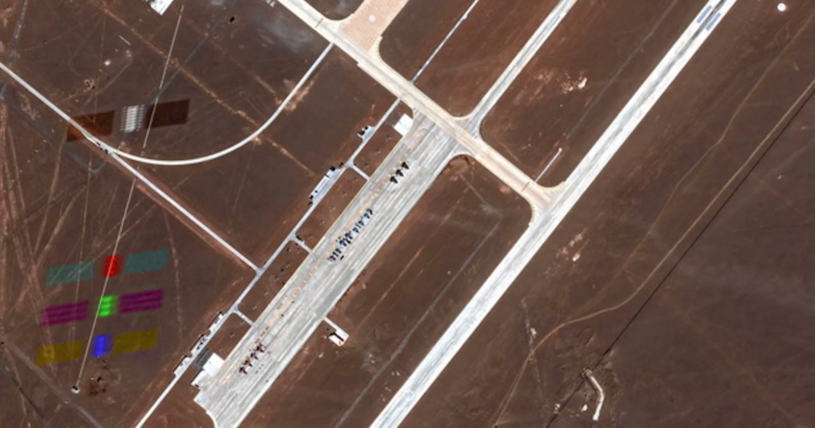 The alignment occurred on August 21, when one of Maxar Technologies’ WorldView Legion satellites photographed the base in the Gobi Desert. The high-resolution image shows fighter jets parked near a runway, but also includes the faint reflection of a Starlink satellite crossing the frame.