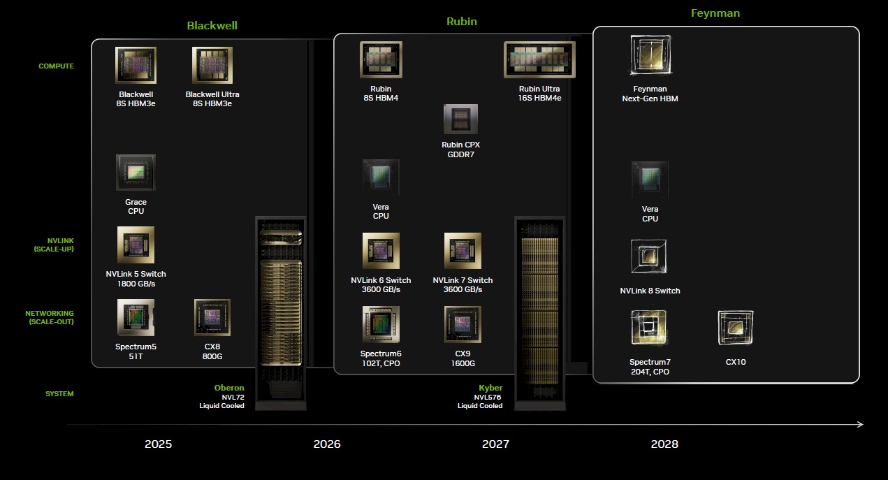Nvidia has made special, lower-cost GPU accelerators for the datacenter from its gaming and workstation GPUs for many years, so it is no surprise that a cutdown variant of the future Rubin architecture that looks more like a gaming or workstation GPU would be used for inference. But this time, with the Rubin CPX, the technology strategy is a little bit different, and it looks like it is a bit cleaner architecture-wise if you can take the images that Nvidia is using for the future Rubin R100/R200 GPUs already on the roadmap and the new Rubin CPX just added to it somewhat literally.