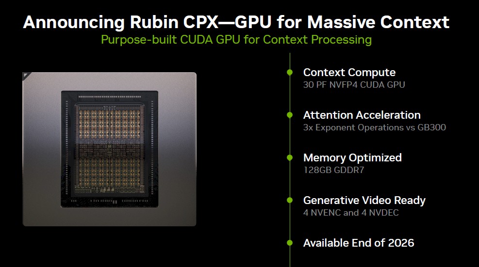 Something has to give, and that something in the Nvidia product line is now called the “Rubin” CPX GPU accelerator, which is aimed specifically at parts of the inference workload that do not require high bandwidth memory but do need lots of compute and, increasingly, the ability to process video formats for both input and output as part of the AI workflow.