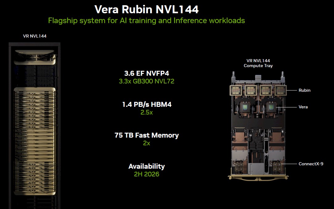 Here are the feeds and speeds for the Vera Rubin NVL144 rackscale system: