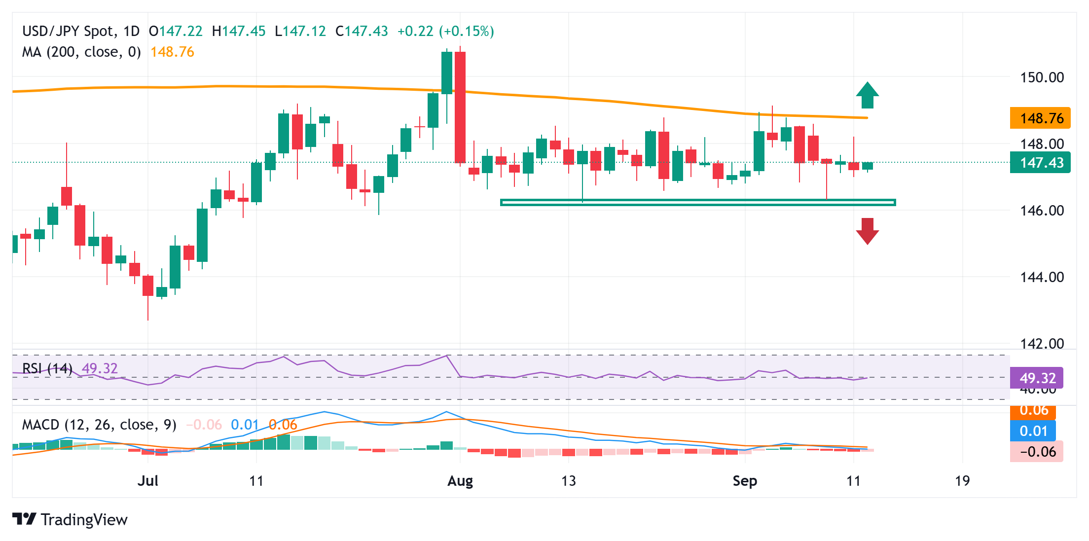 The overnight resilience below the 147.00 mark and the subsequent bounce favor the USD/JPY bulls, though neutral technical indicators on the daily chart warrant some caution. Hence, any further move up is more likely to confront a stiff resistance near the 148.15-148.20 region, or the overnight swing high. A sustained strength beyond, however, should pave the way for a move toward challenging the very important 200-day Simple Moving Average (SMA), currently pegged near the 148.75 zone. This is closely followed by the 149.00 mark and the monthly swing high, around the 149.15 region, which, if cleared decisively, will be seen as a fresh trigger for bulls.