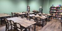 Nearly all of the books are brand-new, except for a small display of gently used books.