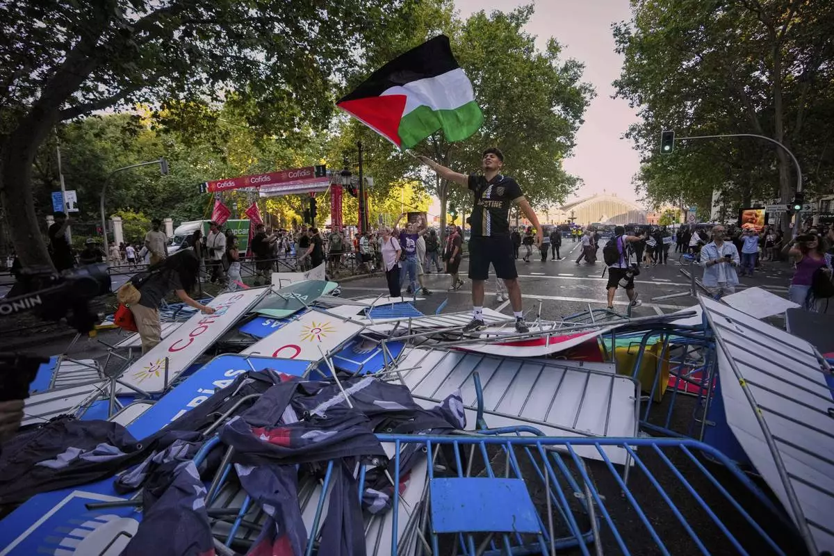 Organizers abandoned the stage with about 50 kilometers (31 miles) remaining as protesters opposing the participation of Israeli team Israel Premier Tech broke through police barriers and blocked the course. The central government’s representative for the Madrid region said an estimated 100,000 people were on the streets during the protests.