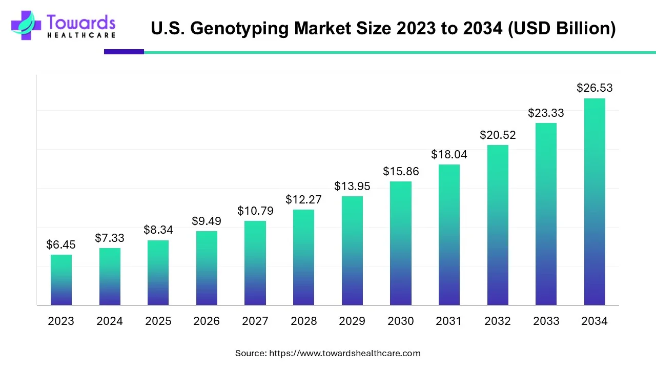 The U.S. genotyping market is driven by its expanding healthcare applications, increasing research and development, and growing incidences of chronic diseases.