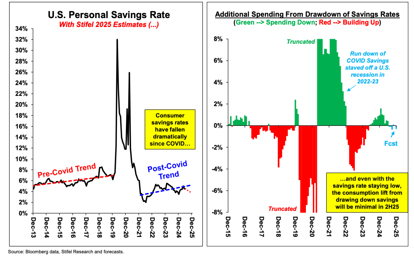 And unlike in 2022–23, there is significantly less consumer savings to support consumption.