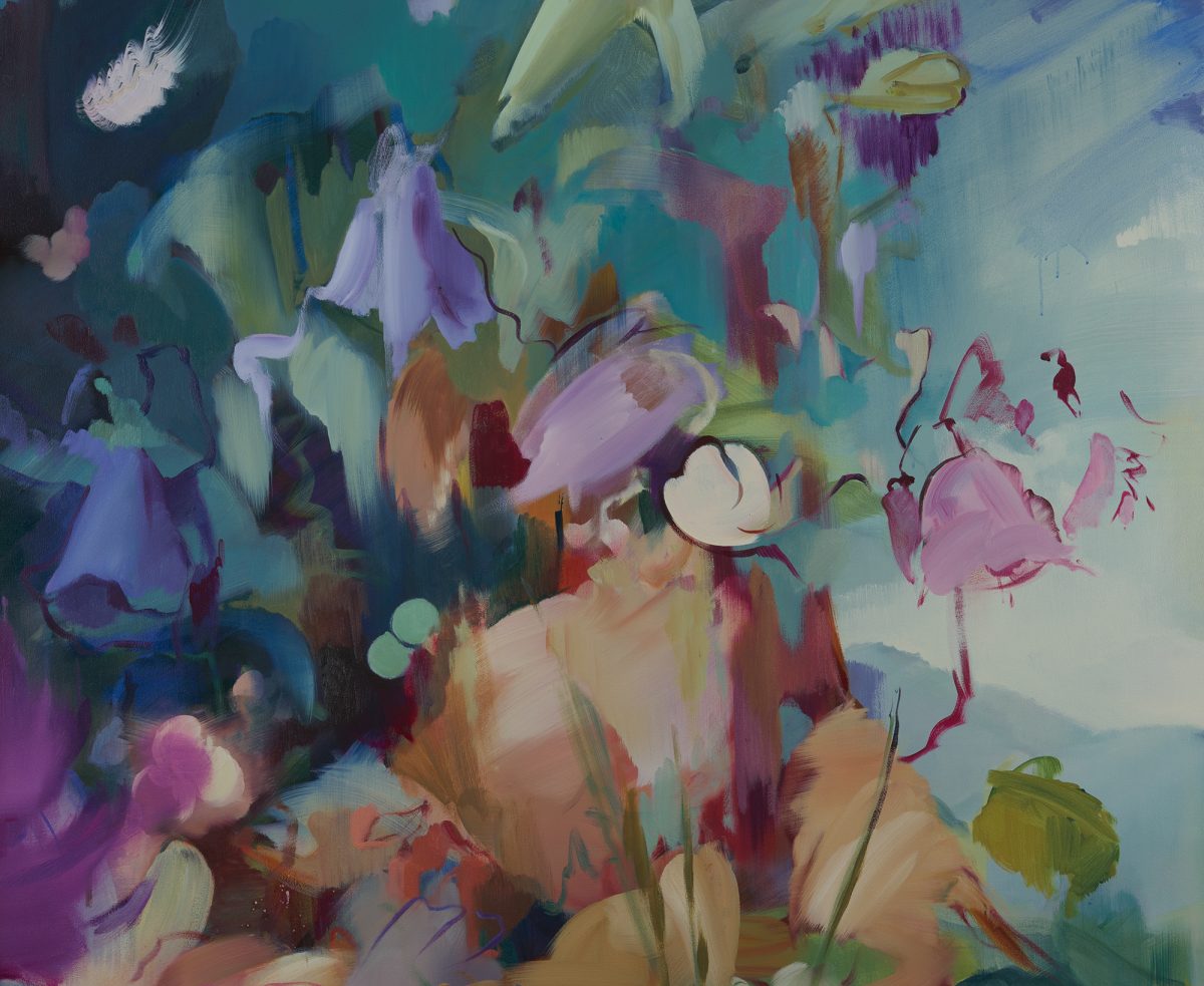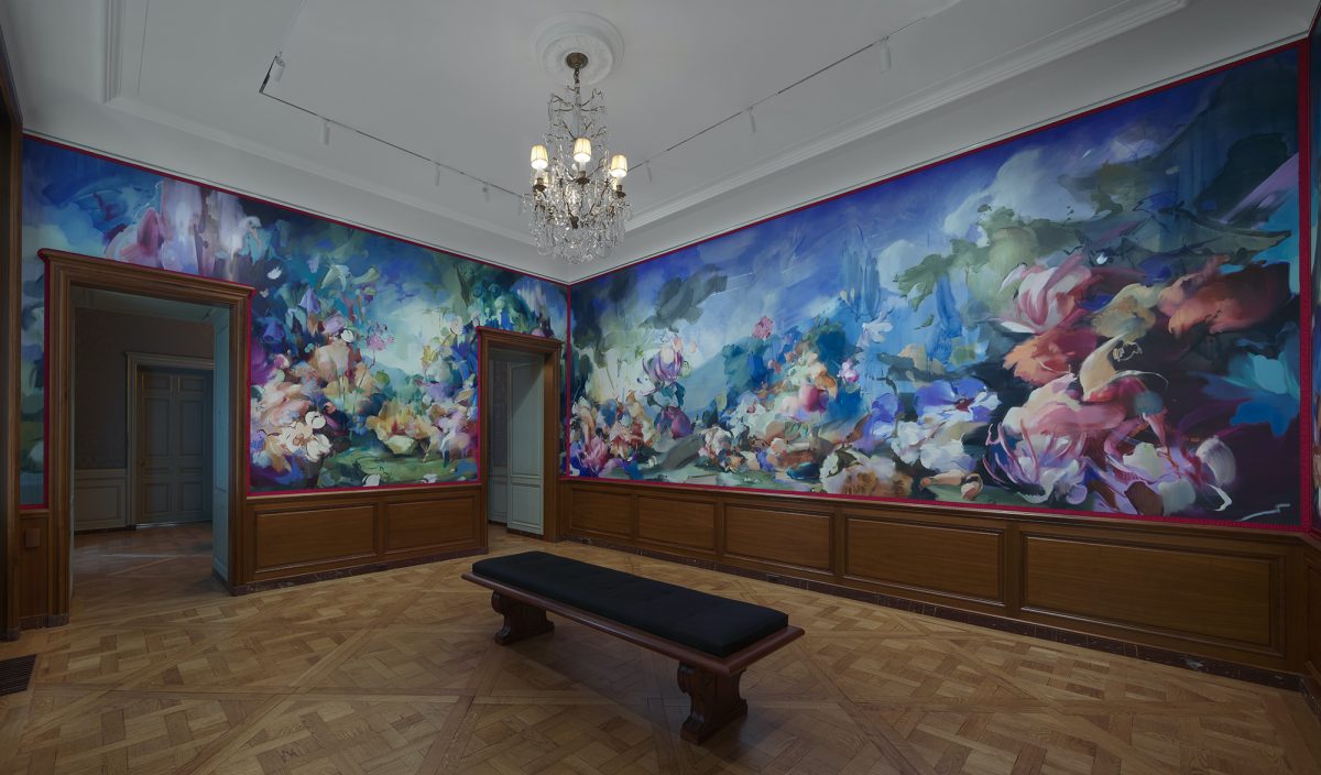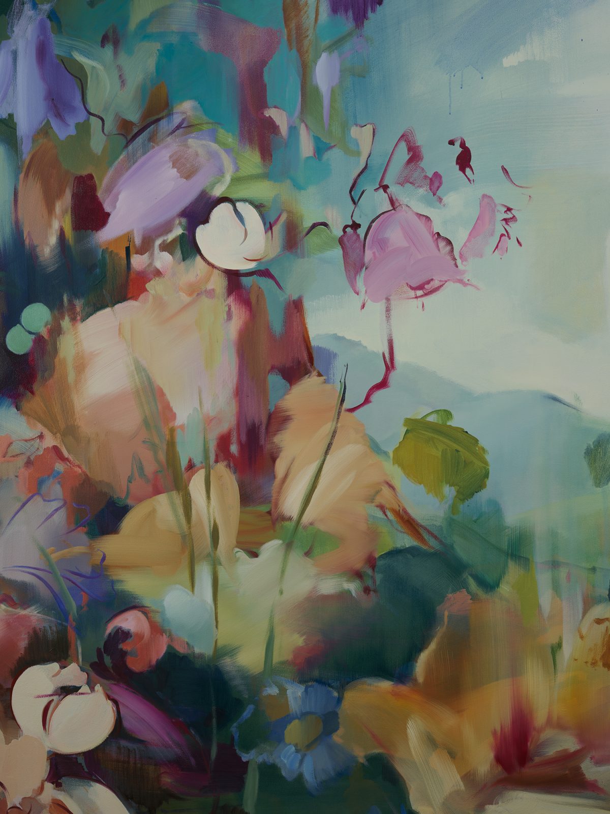Flora Yukhnovich, “Four Seasons: Spring,” detail (2025), oil on mural cloth