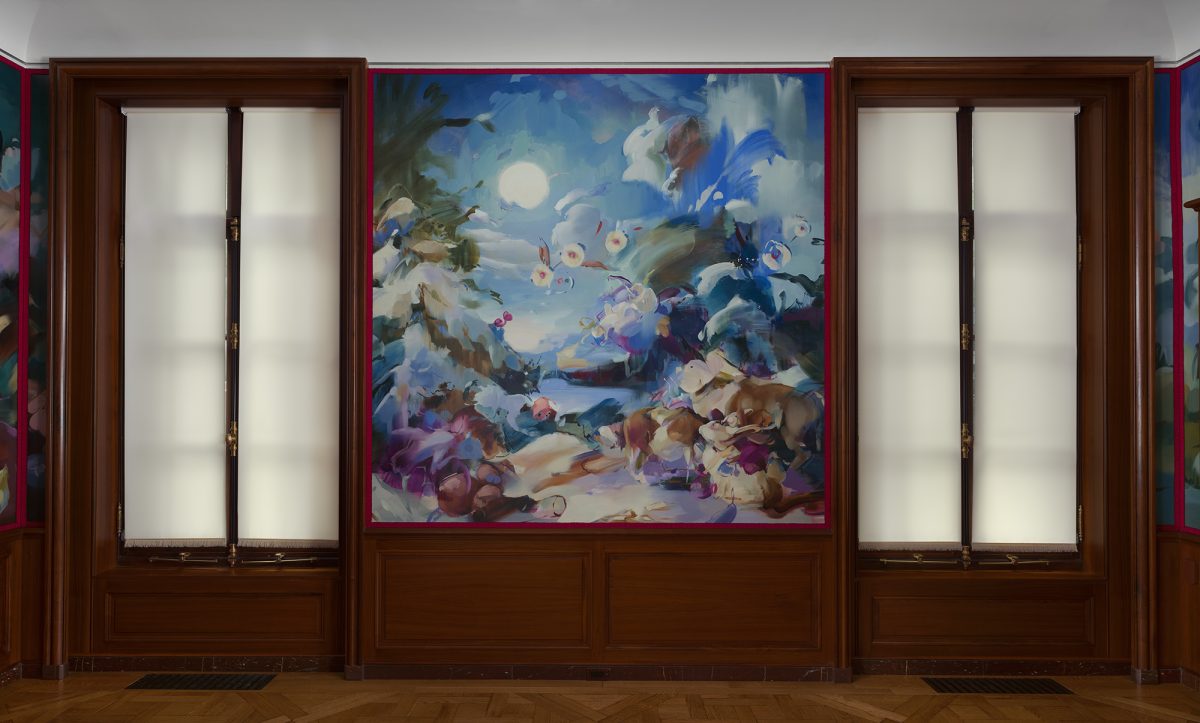 Flora Yukhnovich, “Four Seasons: Winter” (2025), oil on mural cloth