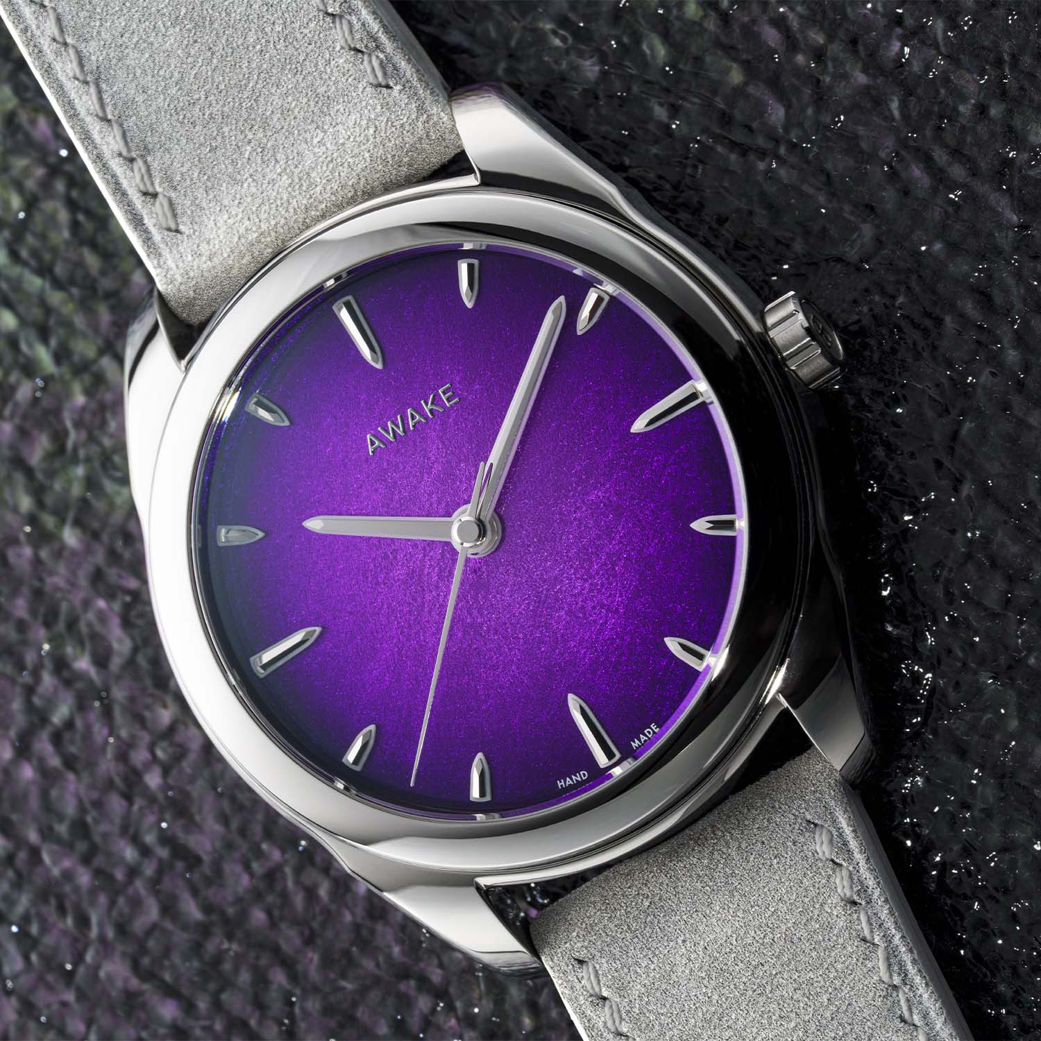 The Ultra Violet, Palladium, Carmine Red and Moonlight Blue editions of the Awake Son Mai Silver Leaf Vignette are now available from the brand’s permanent collection (online and from retailers). The Golden Hour edition is limited to 100 pieces. All versions are priced at EUR 2,000 before taxes. For more details, please visit awakewatches.com.