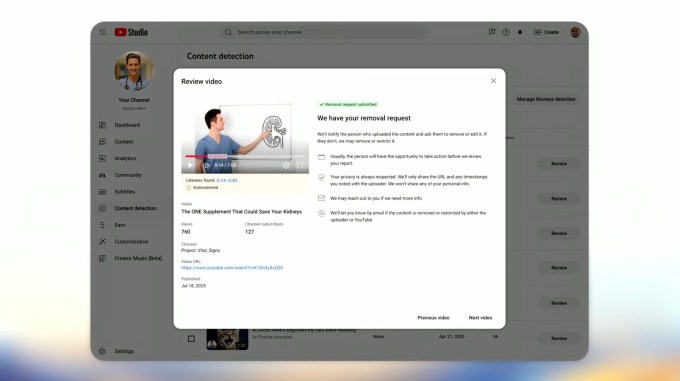 Of these, the most interesting addition is the likeness detection feature, which was first announced in 2024 and expanded earlier this year to a handful of top creators, like Mr. Beast. Now, the company says it’s bringing the technology to an open beta that will be available to all YouTube Partner Program creators — content creators who meet certain subscriber and view thresholds to monetize their channels. These creators will be able to detect, manage, and authorize the removal of any unauthorized videos using their facial likeness. This will help them protect their image and reputation, and ensure their audience isn’t misled, notes YouTube.