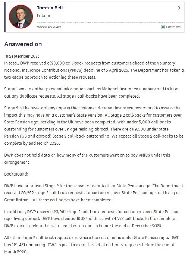 ‘In total, DWP received c528,000 call-back requests from customers ahead of the voluntary National Insurance Contributions deadline of 5 April 2025,’ he said.