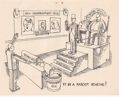 In the early 1930s, frustrated with bank closures, steep pay cuts, and hunger marches, a group of British artists banded together over socialist ideologies as well as propagandistic goals. Most founders of what would become Artists International Association (AIA)—Pearl Binder, Clifford Rowe, Misha Black, James Fitton, James Boswell, James Holland, Edward Ardizzone, Peter Laszlo Peri, and Edith Simon—had working class backgrounds; all were staggered by the Depression. Binder and Rowe in particular had separate experiences living in the USSR, where they were exposed to workers’ cooperatives that helped them imagine alternative ways to organize labor. As one artist (Holland) put it, British artists at this time were “faced with a choice of a cut-throat competition for what crumbs of patronage remained […] or using their abilities to discredit a system that makes art and culture dependent on the caprices of money markets.”