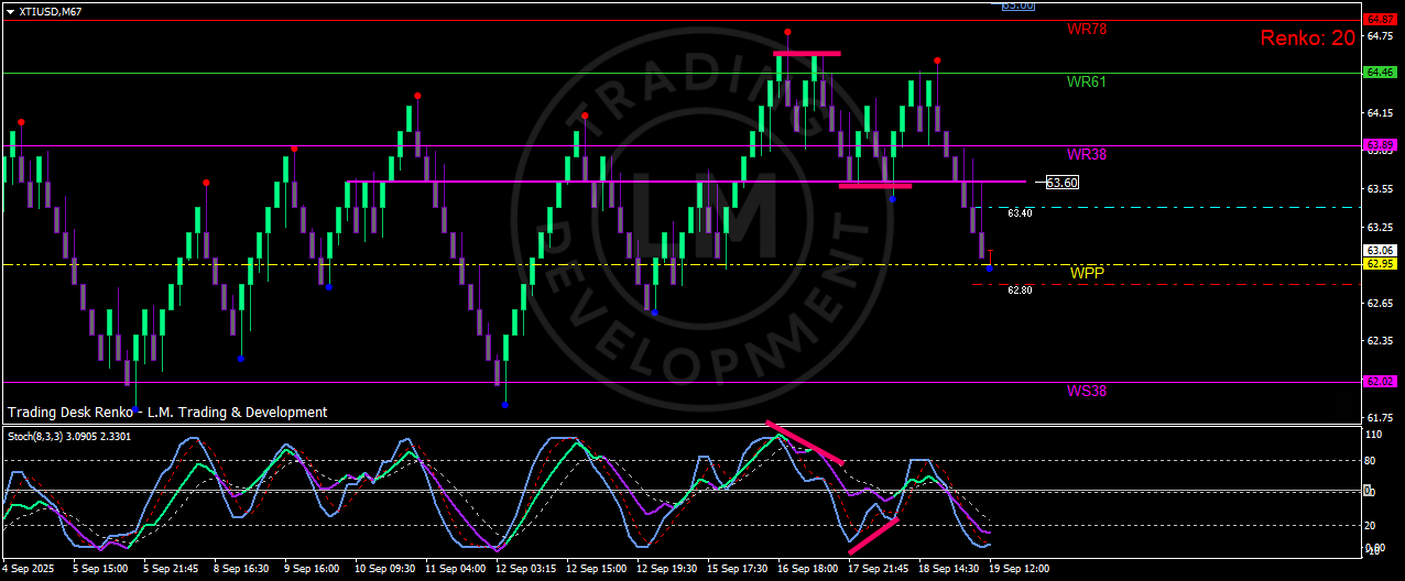 But the real market edge lies in seeing the second-order effects: how intra-Asia trade links amplify China’s weakness, and how the dollar’s unusual strength under Fed easing may prove temporary. For traders, the levels to watch in oil are now clear: 63,60 as pivot-resistance, 62,95 as WPP, and 62,00 as deeper support. A rejection at 63,60 keeps the bias bearish, while only a recovery above 63,90 would neutralize the setup.