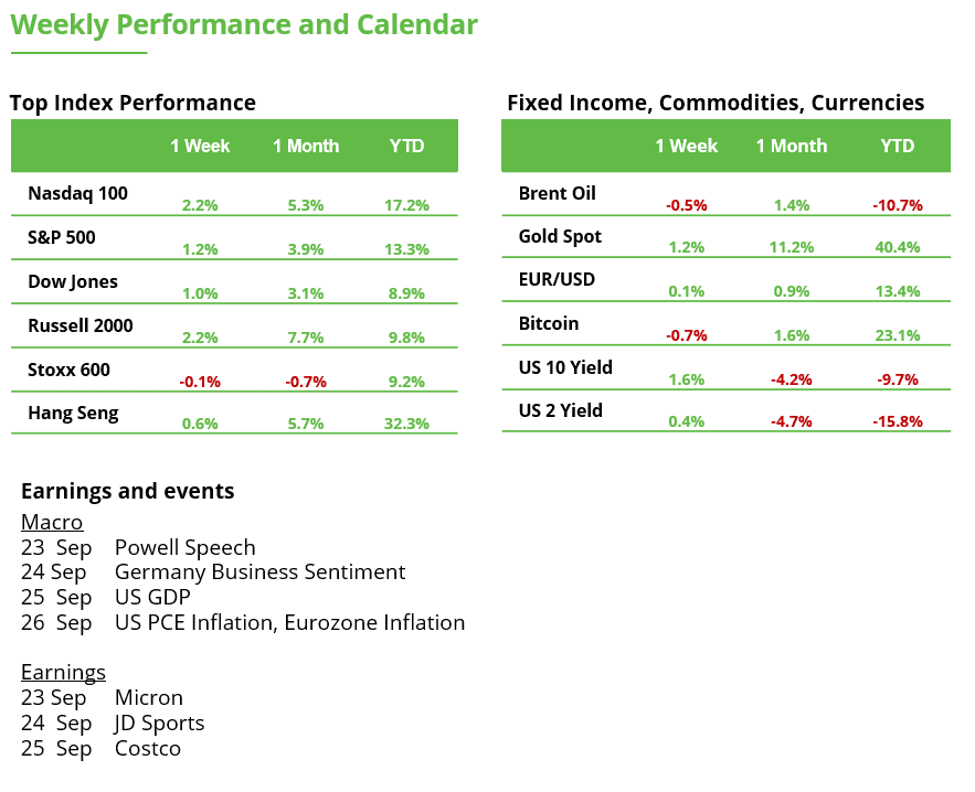 It’s unusual for the Fed to cut rates when bank stocks are sitting at record highs. In fact, it has only happened three times in the past: 1992, 1995 and 1996. Typically, the sector is down 20% or more before the Fed steps in with easier policy. What’s notable is that in those rare instances, banks actually continued to lead markets afterwards. Today, conditions look similar: credit markets remain calm, high-yield spreads are tight, and the rally is broad-based across sectors.