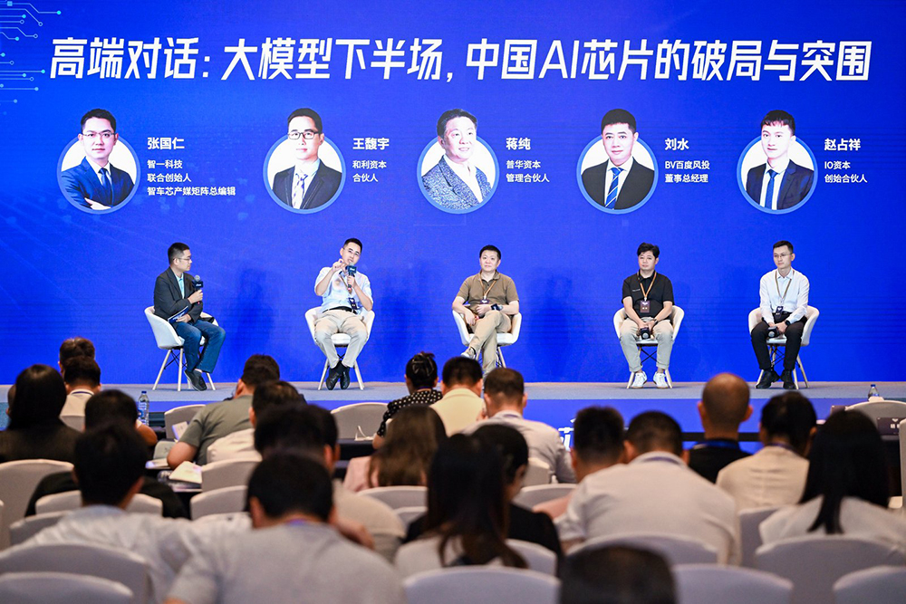 The high – level dialogue, themed “Breaking Through and Breaking Out of the Predicament for Chinese AI Chips in the Second Half of the Large – Model Era”, was hosted by Zhang Guoren, the co – founder of Zhiyi Technology and the editor – in – chief of the Intelligent Vehicle, Chip, and Industry Media Matrix. Four guests, including Wang Fuyu, a partner of Hel Capital; Jiang Chun, a managing partner of Puhua Capital; Liu Shui, the managing director of BV Baidu Ventures; and Zhao Zhanxiang, the founding partner of IO Capital, shared their views.