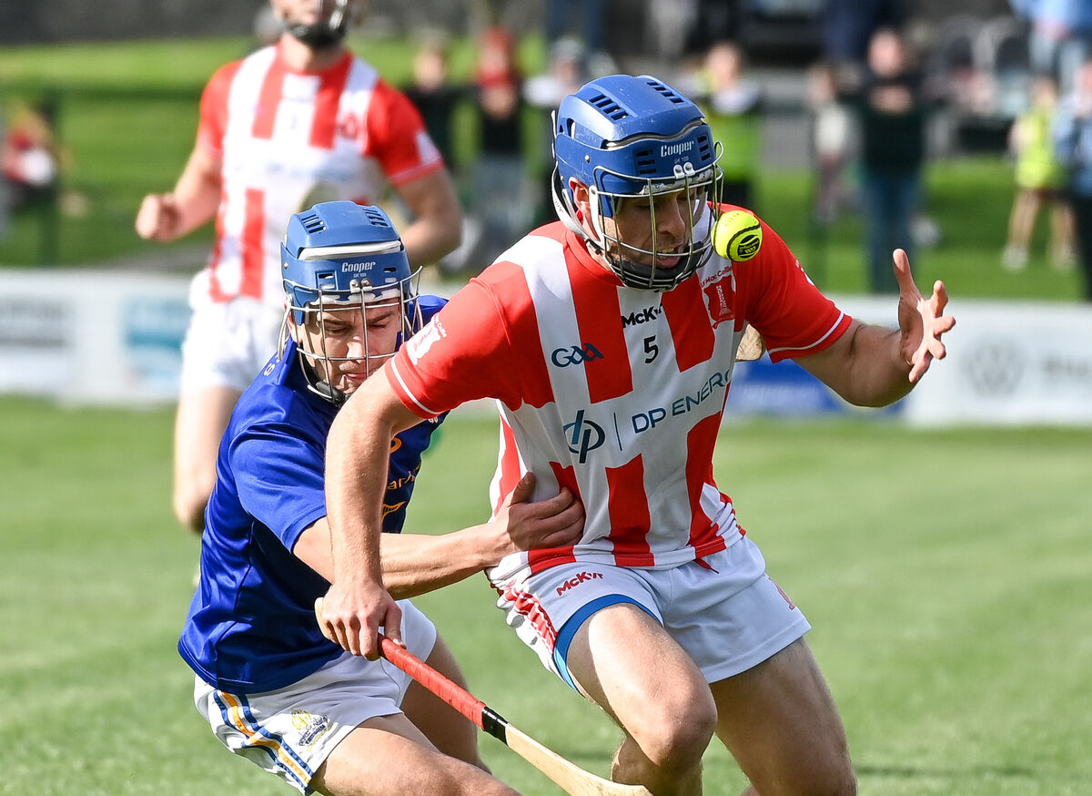 St Finbarr’s Brian Hayes tries to get away from Imokilly’s Ciaran O’Brien during their Premier SHC quarter-final at Midleton. Picture: David Keane.