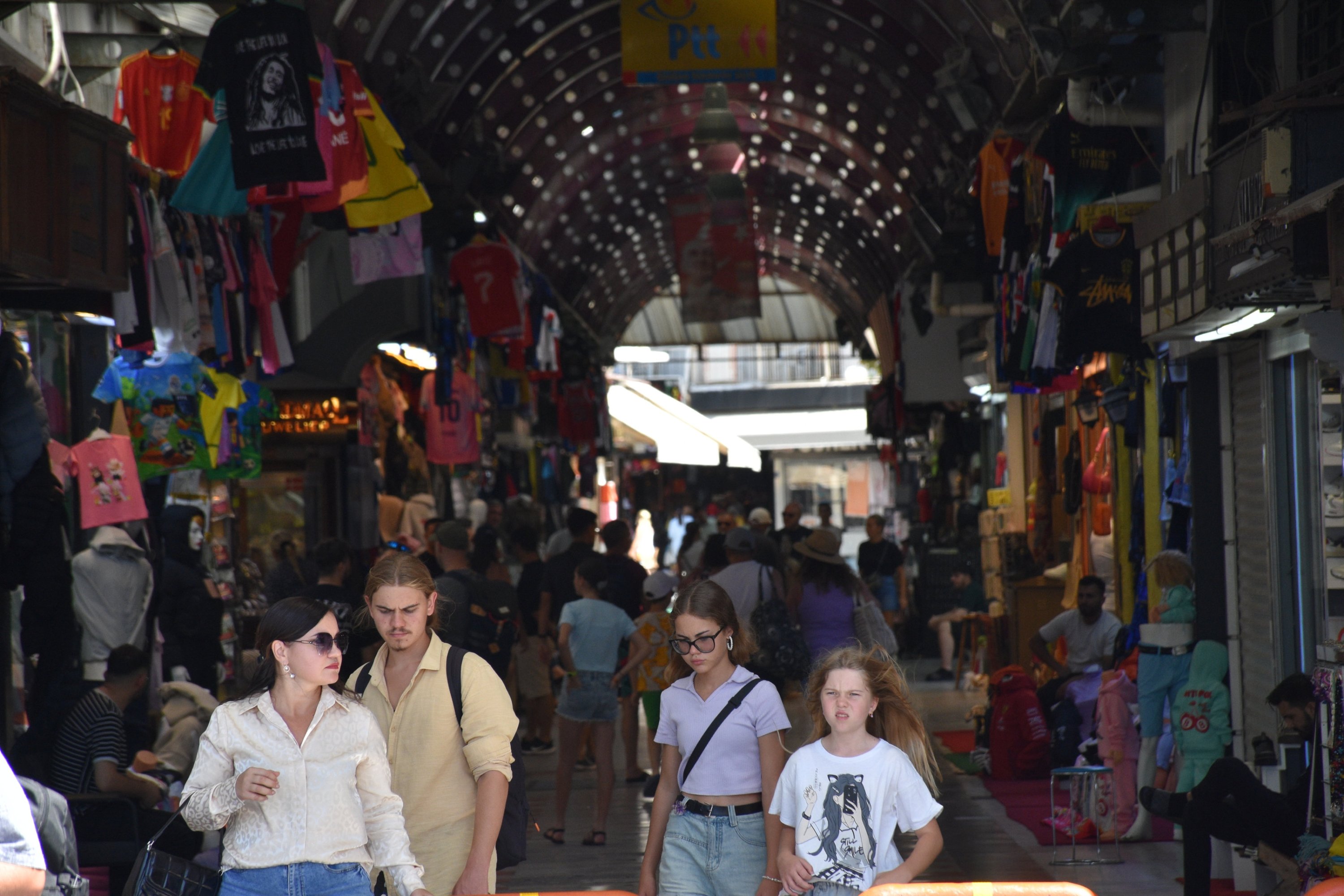 Tourists visit the local marketplace in the Marmaris district of Muğla province, southern Türkiye, Aug. 31, 2025. (AA Photo)