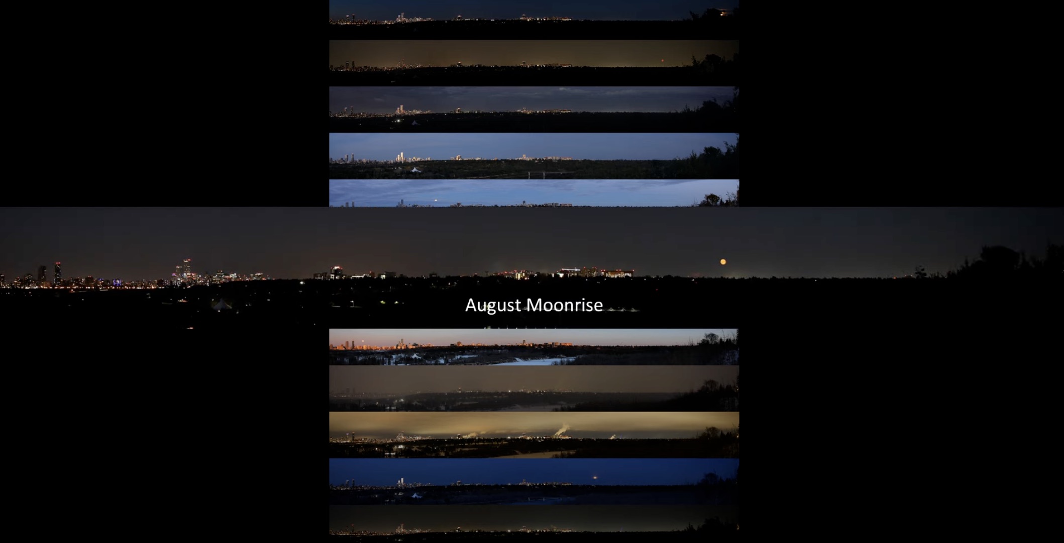 Starting with June 2024 at the very top, each frame represents the moonrise and sunrise until June 2025. | Photo by Luca Vanzella and Alister Ling