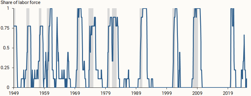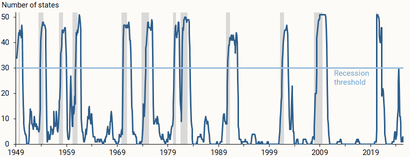 This approach offers two main advantages over national aggregate measures. First, it captures the geographic breadth of economic stress, distinguishing between localized downturns and widespread recessions. Second, it accounts for the fact that different states may experience varying labor market conditions due to regional economic structures and policies.