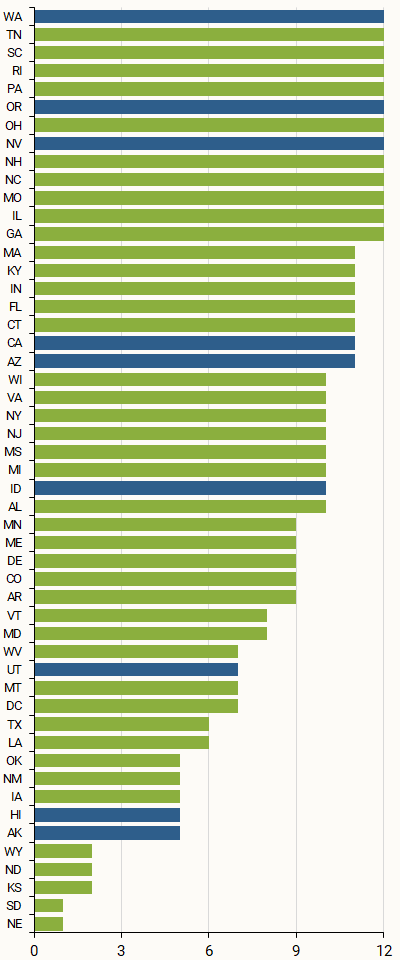 Notes: Blue bars indicate states in the Federal Reserve’s 12th District.