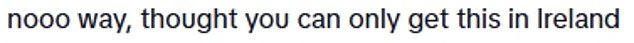 A second added, ‘No way, I thought you could only get this in Ireland.’ A third said, ‘That looks so good I’m jealous.’
