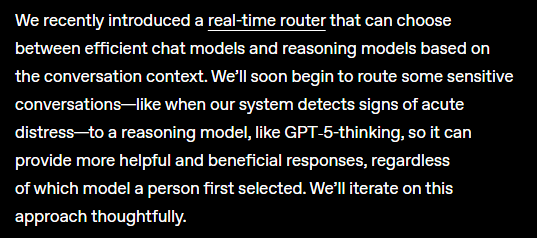 OpenAI is currently testing a new safety router in ChatGPT that automatically routes conversations to different models depending on the topic. Nick Turley, Head of ChatGPT, says the system steps in whenever a conversation turns to “sensitive or emotional topics.”
