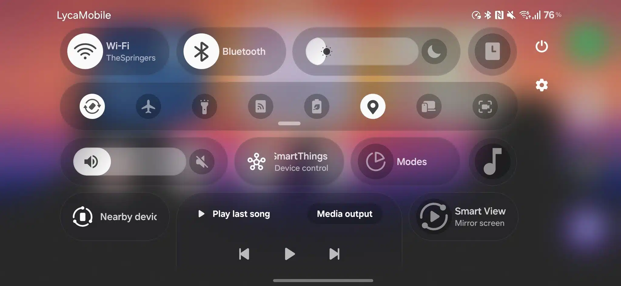However, you still can’t create a custom layout for landscape mode. Customization of the Quick Panel is only possible in portrait orientation. The good thing is that all titles, buttons, sliders, and widgets automatically rearrange themselves to fit the wider screen nicely. For example, the vertical volume slider automatically adjusts its orientation to horizontal to match the landscape layout. Likewise, the Now Playing tile transforms into a larger tile, with additional media controls.