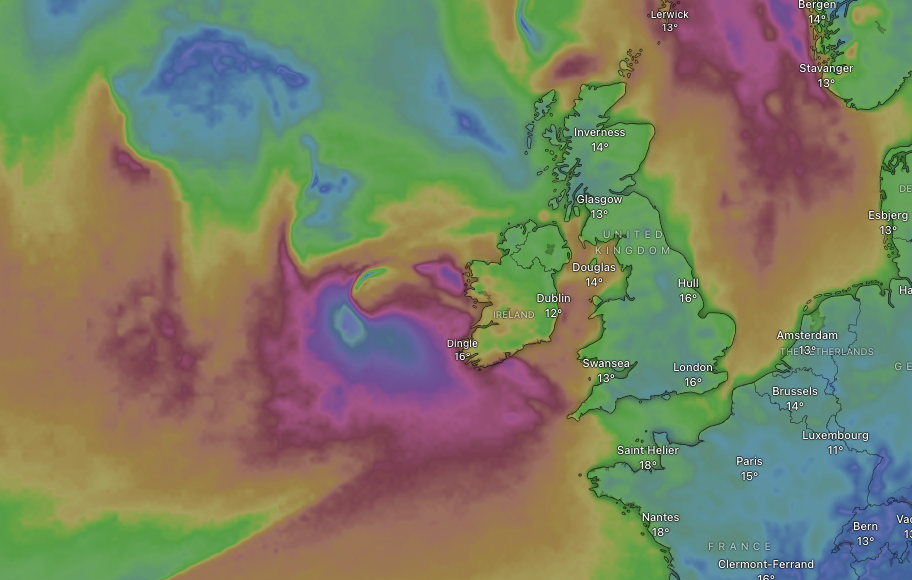 Wind from Ex-hurricane Humberto, winding into the UK and Ireland. Pic from Windy.