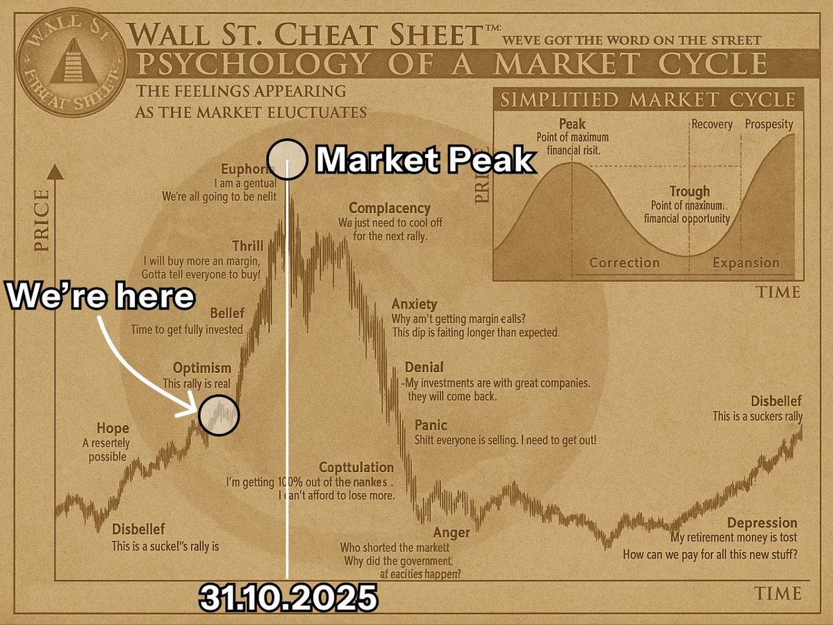 While sentiment remains strong across Bitcoin, Ethereum, and altcoins, he believes the current setup resembles late-phase behavior seen in 2017 and 2021.