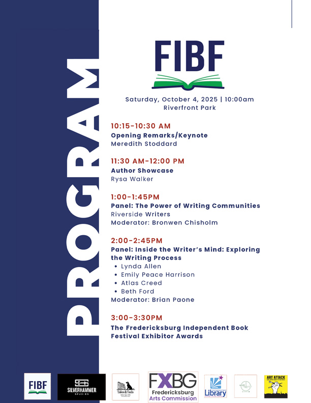 Supporting local authors is important to local bookstores, too. Tales & Tails, which opened in May, is one of the festival sponsors, along with the Fredericksburg Arts Commission, Central Rappahannock Regional Library, The Book Market FXBG and Noll’s company Silverhammer Studios.