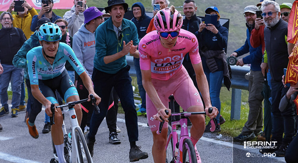 Le cose sono cambiate nel giorno dell’Angliru, ormai al termine della seconda settimana. Sul mostro asturiano Pellizzari a un certo punto ha perso terreno, ma con Hindley saldo al fianco di Almeida e Vingegaard si è gestito alla grandissima. Sull’Angliru Giulio si è messo di “passo” e ha sfruttato al meglio i tratti più pedalabili. Alla fine il margine ceduto a Vingegaard e Almeida era di 1’11”, quasi tutto accumulato nei durissimi tratti al 23 per cento.