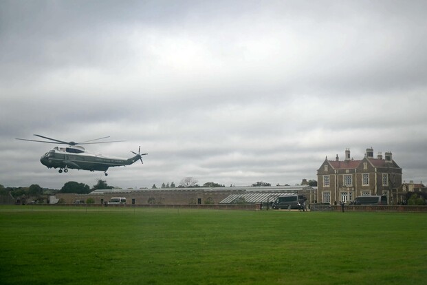La massiccia limousine presidenziale ha portato il presidente americano in uno spazio aperto del parco di Windsor, dove lo attendeva il suo elicottero, il Marine 1, a bordo del quale è successivamente decollato alla volta di Chequers: la residenza di campagna dei primi ministri britannici che si trova pure fuori Londra, nella contea del Buckinghamshire, a circa 60 chilometri dalla capitale.