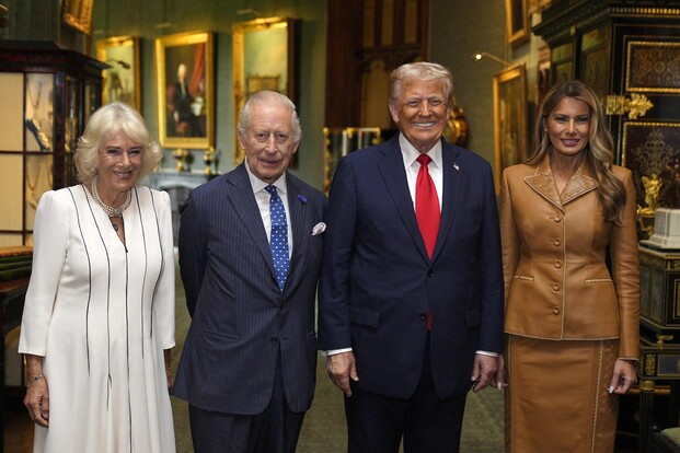 Prima della stretta di mano finale con il sovrano e della partenza, Trump è stato ritratto in un ultima fotografia con la first lady Melania, accanto a re Carlo III e alla regina Camilla. Sia il presidente, sia il monarca vestivano di blu, mentre Melania esibiva questa volta un tailleur in pelle color cognac da giorno – meno severo rispetto all’outfit scuro di ieri – e Camilla indossava un vestito bianco con righe e una collana di perle.
