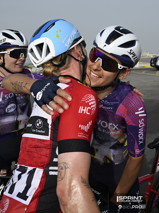 Bisogna dire che Lorena quando mette casco, occhiali e numero sulla schiena diventa un cecchino in certe gare. Vede e legge la corsa. In ogni gara in cui c’era nervosismo o si formavano ventagli, lei era sempre nelle posizioni giuste. Un esempio sono i ventagli al UAE Tour oppure quello che abbiamo orchestrato noi al Giro Women nella tappa di Monselice o ancora recentemente al Simac. Lorena è brava a non sprecare energie e ormai sa gestirsi da sola anche quando non ha un lead out perfetto.